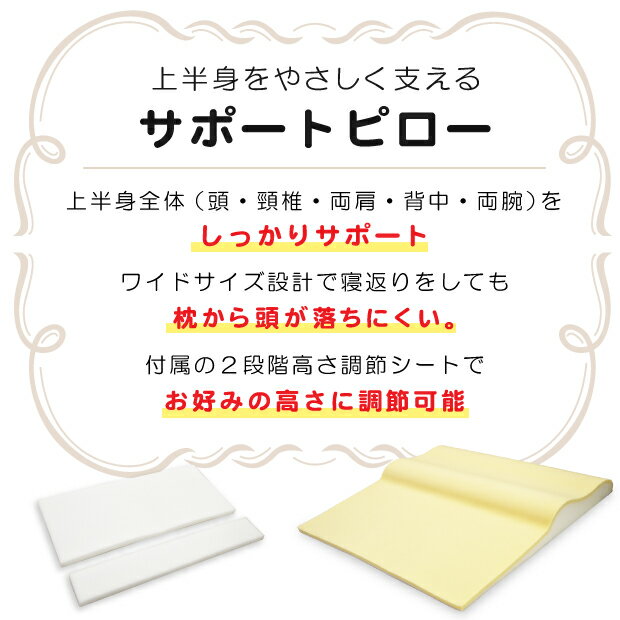 「サポートピロー」は正しい寝姿勢をしっかりサポート、 キープしてくれるビッグサイズの枕です。