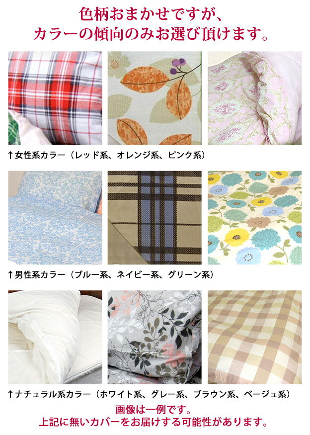 ≪色柄、素材全てミックスで一斉在庫処分!!≫ いろいろミックスの布団カバーですが、製造メーカーは必ず、大手寝具メーカーの「西川」でお届けします。